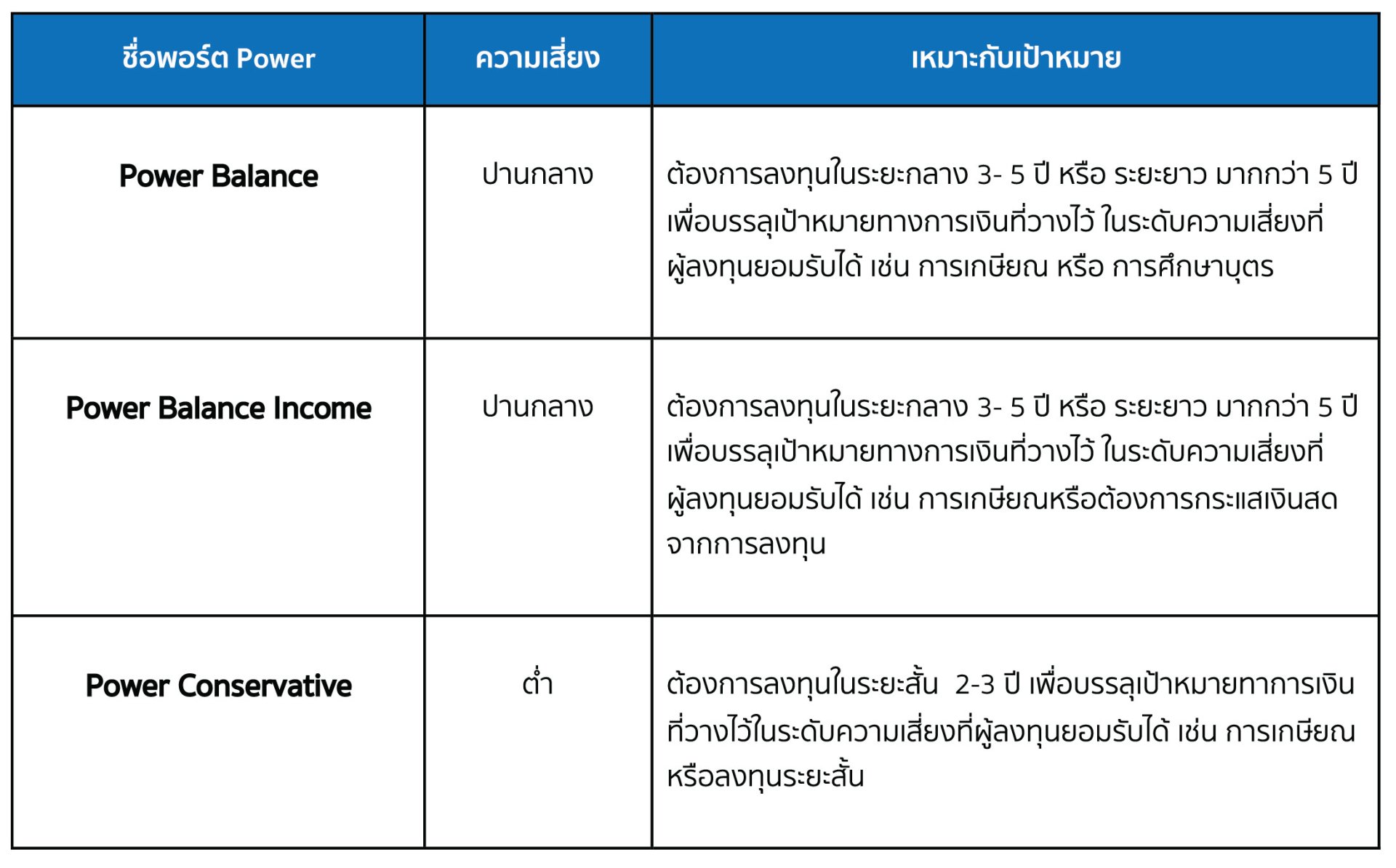 นอกจาก Power Growth แล้ว เรายังมีอีก 3 พอร์ตการลงทุนเพื่อรับรองกับความต้องการและเป้าหมายในแต่ละช่วงอายุดังนี้