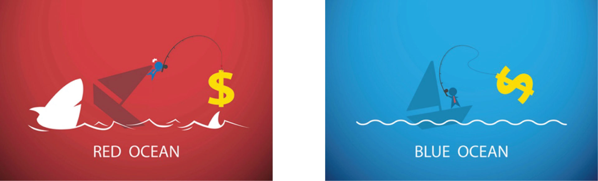 Red Ocean คือตลาดที่มีการแข่งขันสูง เน้นการแข่งขันโดยใช้ สินค้านำ เน้นราคาถูก ตลาดแบบนี้ Advisor มักจะนำเสนอด้วยลักษณะของสินค้า เน้นไปที่เบี้ยหรือค่าใช้จ่ายถูกๆ เนื่องจากตลาดอาจจะมีความ Mass หรือ ลูกค้าไม่สามารถจ่ายเงินได้มากนัก ดังนั้น Wealth Advisor จะต้อง สร้าง Blue Ocean เพื่อสร้างความแตกต่าง เหนือกับคู่แข่ง สร้างคุณค่าของบริการ เน้นไปที่เป้าหมายของลูกค้า สามารถบริหาร Wealth ลูกค้าได้ 3 ระดับ คือ ส่วนตัว ครอบครัว และ ธุรกิจ