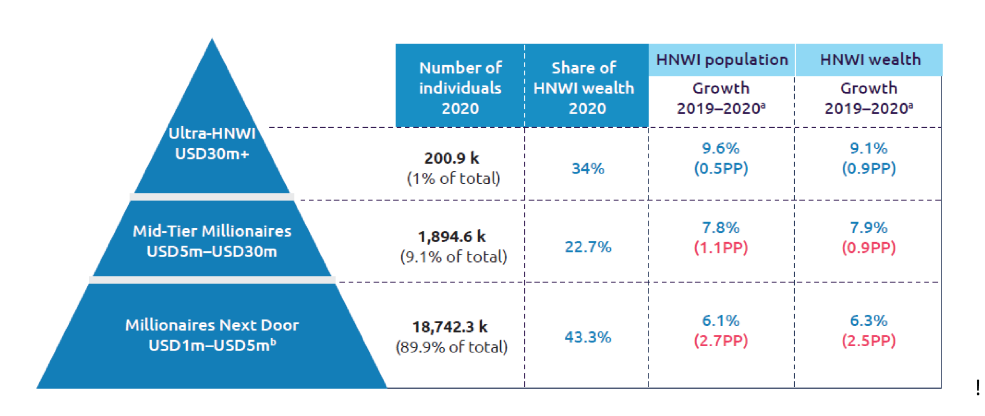 จากข้อมูลจาก Capgemini Financial Services พบว่า กลุ่มลูกค้าที่น่าสนใจคือ กลุ่ม HNW แบบ Millionaires Next Door ซึ่งจะมีสินทรัพย์ ประมาณ 30-150 ล้านบาท ดังนั้นทั้งกลุ่ม Mass Affluent และ HNW – Next Door จึงเป็นกลุ่มที่น่าสนใจ