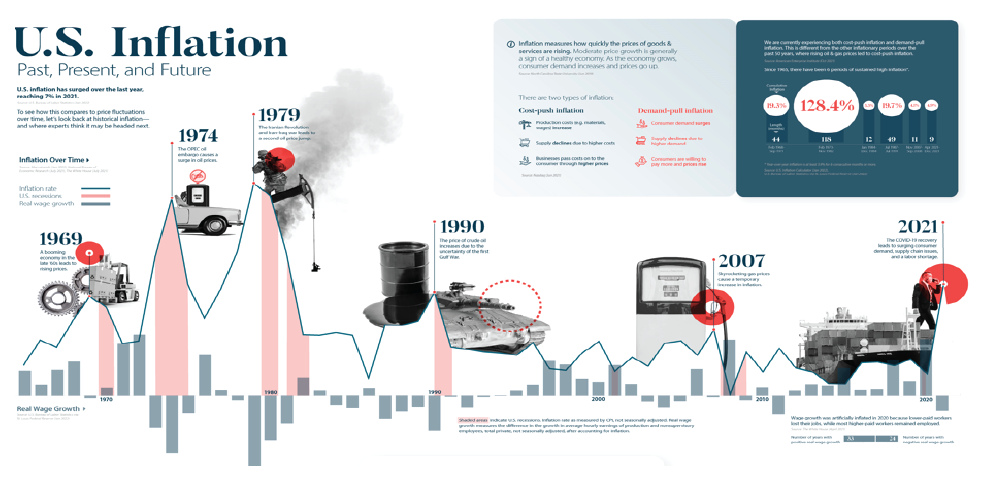 ถ้าย้อนกลับไปปี 2007 จะเป็นปีล่าสุดที่เงินเฟ้อสูงขึ้นเนื่องจาก ราคาพลังงานแต่ยังอยู่ในระดับไม่เกิน 4% ถ้าลองสังเกตดูแล้วเงินเฟ้อที่สูงระดับเกิน 5% กลับไปปี 1990 ที่เกิดสงครามคูเวต จะเห็นได้ว่าเมื่อเกิดเงินเฟ้อสูง มีโอกาสสูงที่เศรษฐกิจถดถอย