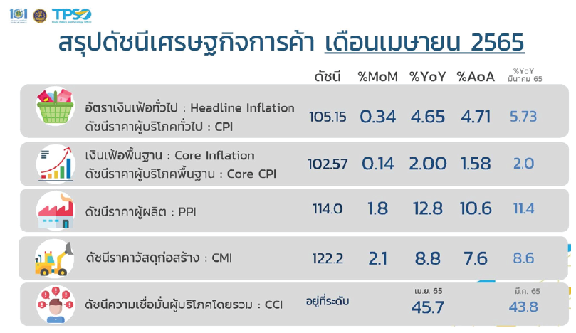 เงินเฟ้อของประเทศไทยก็ปรับตัวสูงขึ้นเช่นเดียวกัน โดยเพิ่มจากปีก่อนถึง 4.65%