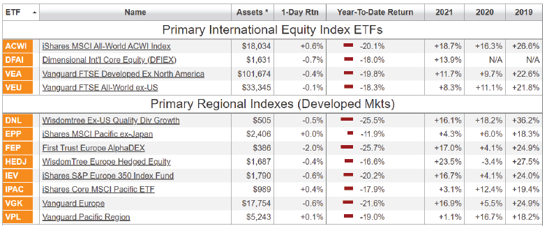 ในขณะนี้ตลาดหุ้นเข้าสู่สภาวะตลาดหมี คือ ตลาดหุ้นทำการตกลงมาจากจุดสูงสุด เกิน -20% หมายถึงเข้าสู่สภาวะตลาดหมี ผลตอบแทนของ Index ของแต่ละภูมิภาคของการลงทุน ผลตอบแทนอยู่ระหว่าง -15% ถึง -20% ตามตารางข้างล่าง