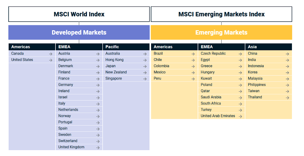 ก่อนอื่นเรามาดูก่อนว่า ตลาดประเทศที่พัฒนาและตลาดประเทศเกิดใหม่ ประกอบด้วยใครกันบ้าง
