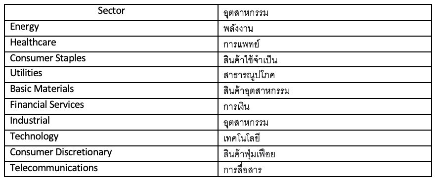 Sector คือการลงทุนในอุตสาหกรรมเดียว โดย Global Sector หลักๆ มีดังนี้