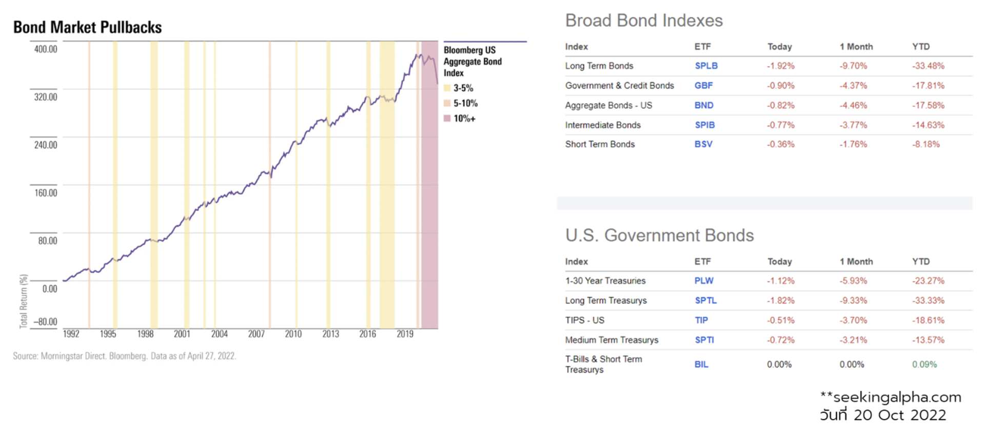 การขึ้นดอกเบี้ยเร็วและแรงกว่าปกติ ทำให้ตลาดตราสารหนี้เข้าสู่ Bear market ในรอบ 20 กว่าปี โดยเฉพาะ Long-Term Bond จะได้ผลกระทบมากที่สุด
