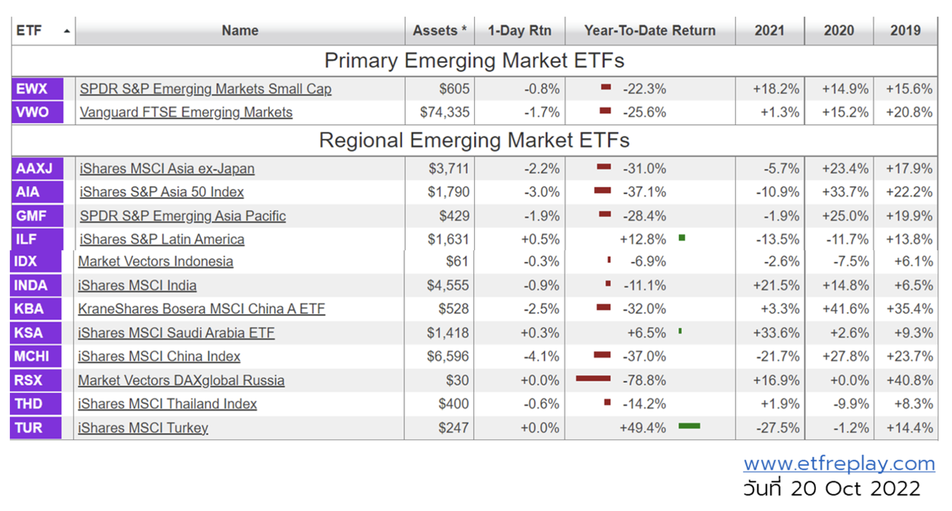 ประเทศส่วนใญ่จะปรับตัวลดลงมากกว่าตลาด ยกเว้นบางประเทศ เช่น ไทย , อินโดนีเซีย และ Saudi Arabia ที่มีสัดส่วนหุ้นพลังงาน อยู่มาก