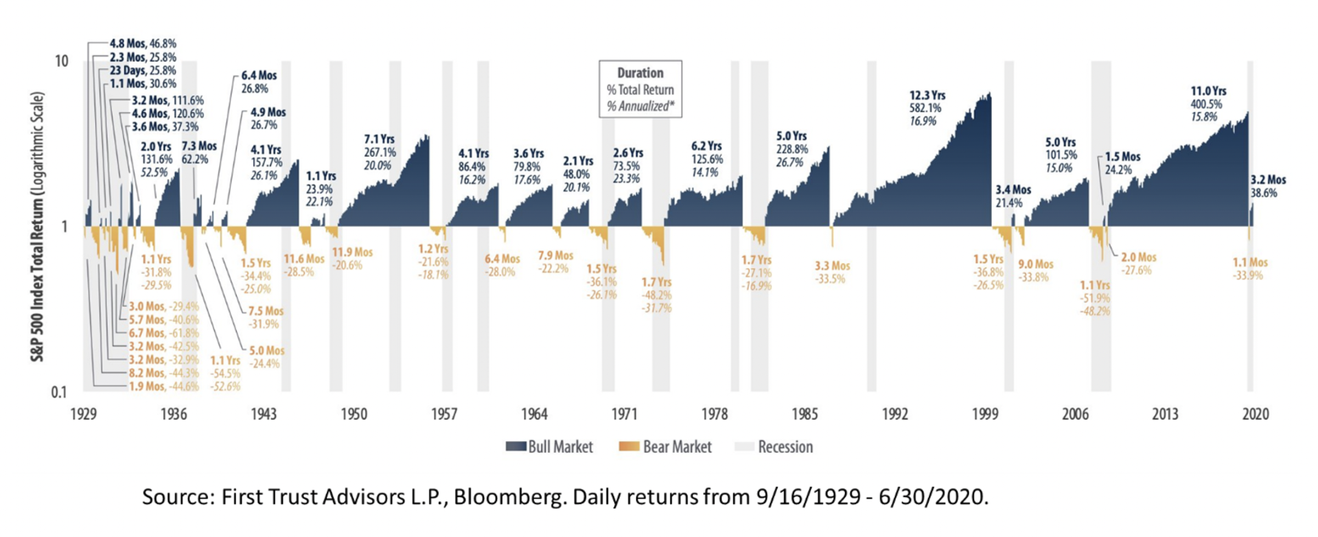 สิ่งที่นักลงทุนจะต้องเข้าใจคือ ตลาดหมีเป็นเรื่องปกติ ตลาดหมีและ Recession เป็นสิ่งหนึ่งในวงจรชีวิตของการลงทุน มันเกิดขึ้นเสมอและจะเกิดขึ้นอีกเรื่อยๆ ตลอดไป