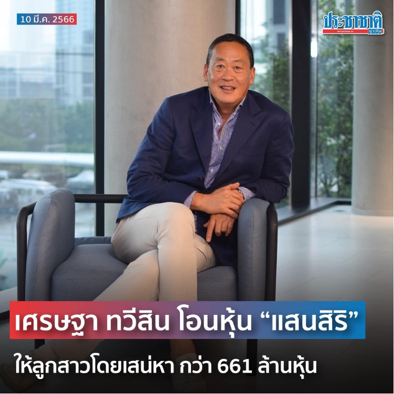 คุณเศรษฐา ทวีสินโอนหุ้น แสนสิริ ให้ลูกสาวโดยเสน่หา จำนวน 661,000,000 หุ้น